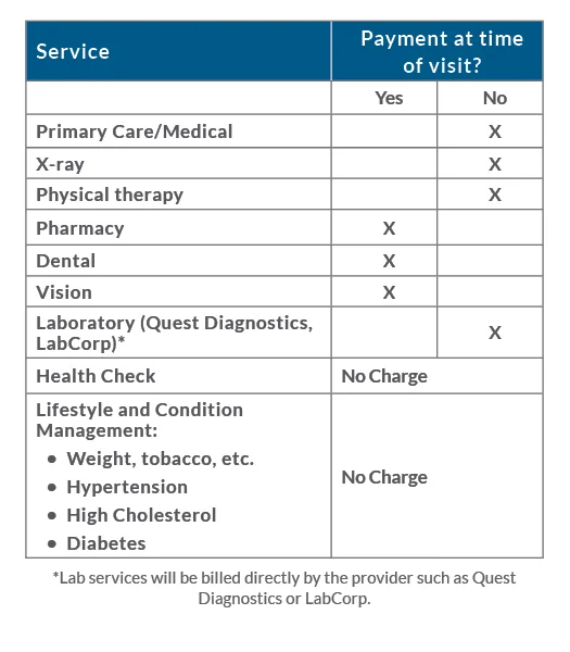 The matrix below details the patient’s responsibility for payment of services at the Associate Family Health Center. If you have questions regarding this information, please contact Benefits Services at BenefitsServices@bmwafhc.com.